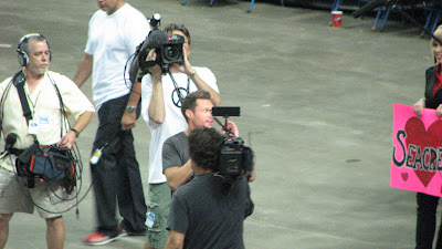 People were FAINTING. He is teeny, but I was totally impressed by his congeniality. He let fans take pictures, even snapping a few with fan's cameras. We did a bunch of promos, and damn that took FOREVER. Did you know that in television, every cheer or sentence a crowd chants must be followed by "WHOOOO" and clapping. Yeah. Classy.