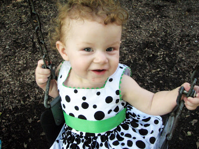 Mina loves the park- she loves to run as far and as fast as she can, loves to chase the doggies "Bark Bark," look at flowers, and SWING~ This kid loves to swing.